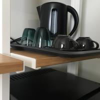 В числе удобств кондиционер, телевизор с плоским экраном и чайник.