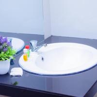 Собственная ванная комната с душем укомплектована бесплатными туалетно-косметическими принадлежностями.