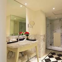 Также в числе удобств собственная ванная комната, отделанная мрамором.