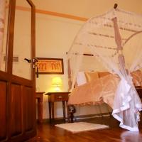 Номера с кондиционером обставлены резной мебелью и кроватями с балдахином.
