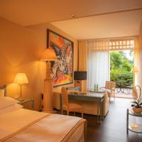 Номера и люксы отделаны в индивидуальном стиле и располагают балконом, террасой или лоджией с живописным видом на парк и/или озеро.