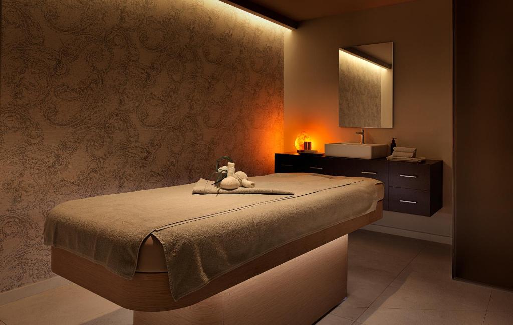 В лечебно-оздоровительной зоне есть сауна, хаммам, крытый плавательный бассейн и фитнес-зал.