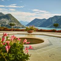 Отель Villa Principe Leopoldo с панорамным видом на озеро Лугано и горы расположен на территории большого парка над городом Лугано.