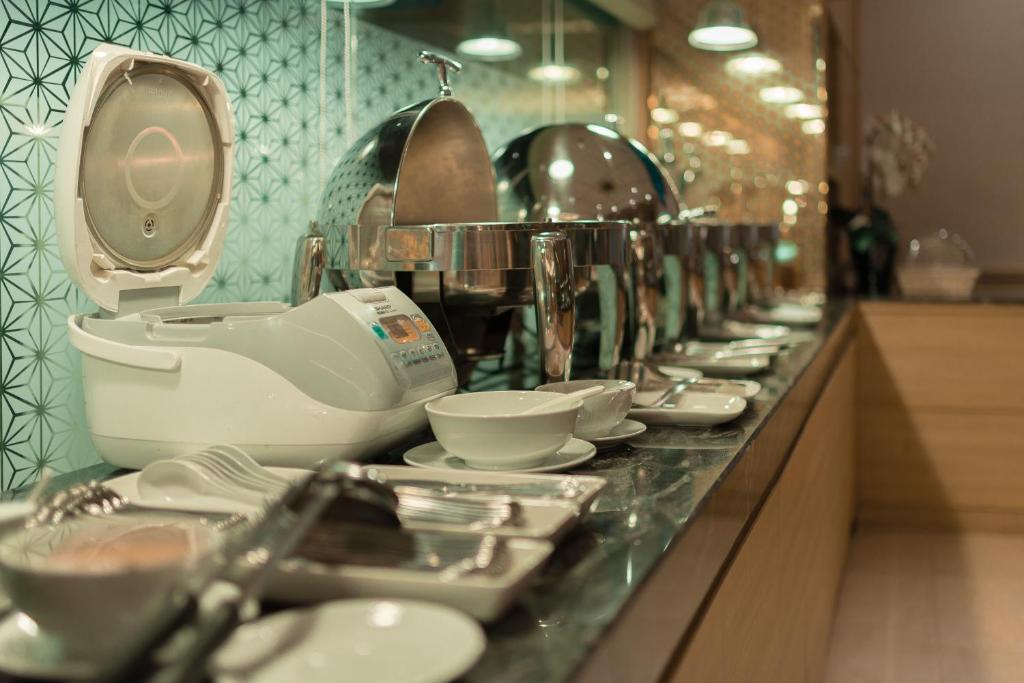 Завтракать можно в обеденном зале, сытный завтрак предоставляется как здесь, так и по запросу в номера отеля. В гостинице оборудована мини-кухня, со всем инвентарем, посудой и столовыми приборами, поэтому гостям не составит труда подогреть или приготовить еду самим.