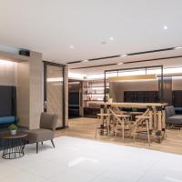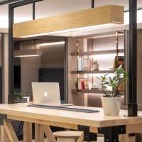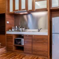Номера отеля отличаются функциональностью и вмещают в себя спальню, небольшую зону отдыха с диваном и оборудованную мелкой бытовой техникой кухню. Стиль оформления комнат современный и лаконичный, в отделке приоритет отдан темным породам деревьев.
