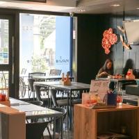 Номера мини-гостиницы Mini R оформлены в современном стиле, и в них настелен деревянный пол.