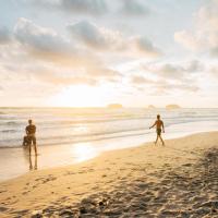Гости могут отдохнуть на пляже и прогуляться по саду.