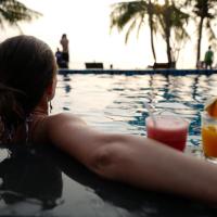 В баре на пляже можно заказать разнообразные напитки, послушать живую музыку и посмотреть танцевальные огненные шоу.