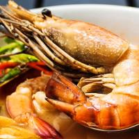 В ресторане, откуда открывается вид на закат, гости могут заказать блюда международной и тайской кухни из обширного меню.