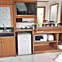 В распоряжении гостей хорошо оборудованная мини-кухня с холодильником, микроволновой печью и плитой.