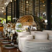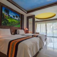 Прекрасная роскошная территория, на которой расположен бассейн и зона отдыха, а также есть рисовое поле и небольшое, но очень красивое озеро с лотосами, а пение птиц по утрам слух радует. Номера в отеле чистые просторные, комфортные. Завтраки хорошие.