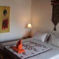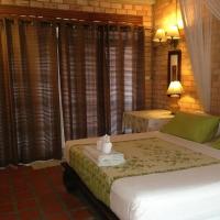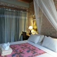 Просторные номера оформлены в тайском стиле с элементами красного кирпича и оснащены кондиционером и вентилятором.