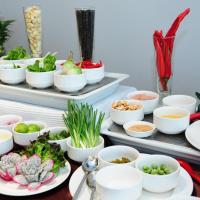 Питание здесь организовано в лучшем виде: есть ресторан, в котором сервируются европейские и тайские блюда, можно заказать завтрак к себе. Если захотите чего-нибудь выпить, то к вашему пользованию бар.