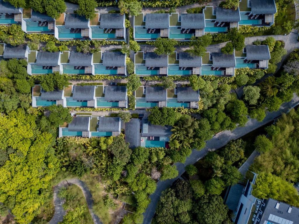 Шелковые лампы и дизайнерская мебель дополняют спокойный элегантный интерьер вилл.