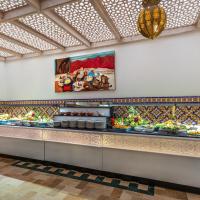 На территории комплекса есть ресторан, работающий по системе «шведский стол», а также бар и снек – бар, где можно заказать легкие закуски и освежающие коктейли. По желанию гостей осуществляется доставка напитков и еды в номер. Около бассейна есть стойка с мороженым и барбекю кафе.