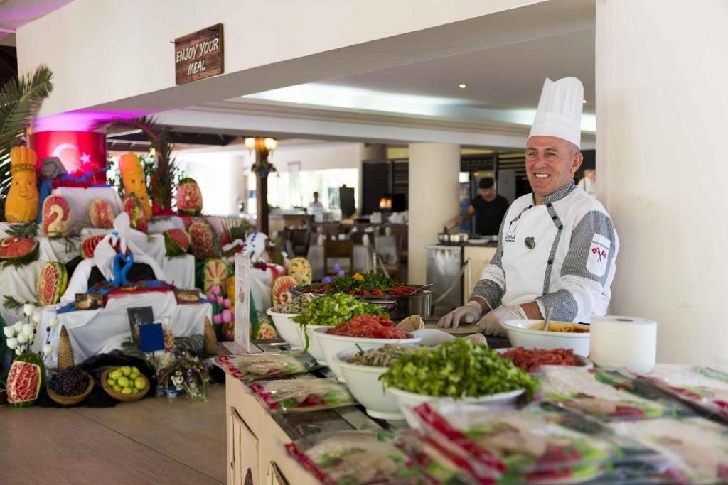 Отель Seven Seas Blue типа «ультра все включено» находится в 600 метрах от озера Титреенгёль и в 5 км от амфитеатра Сиде.