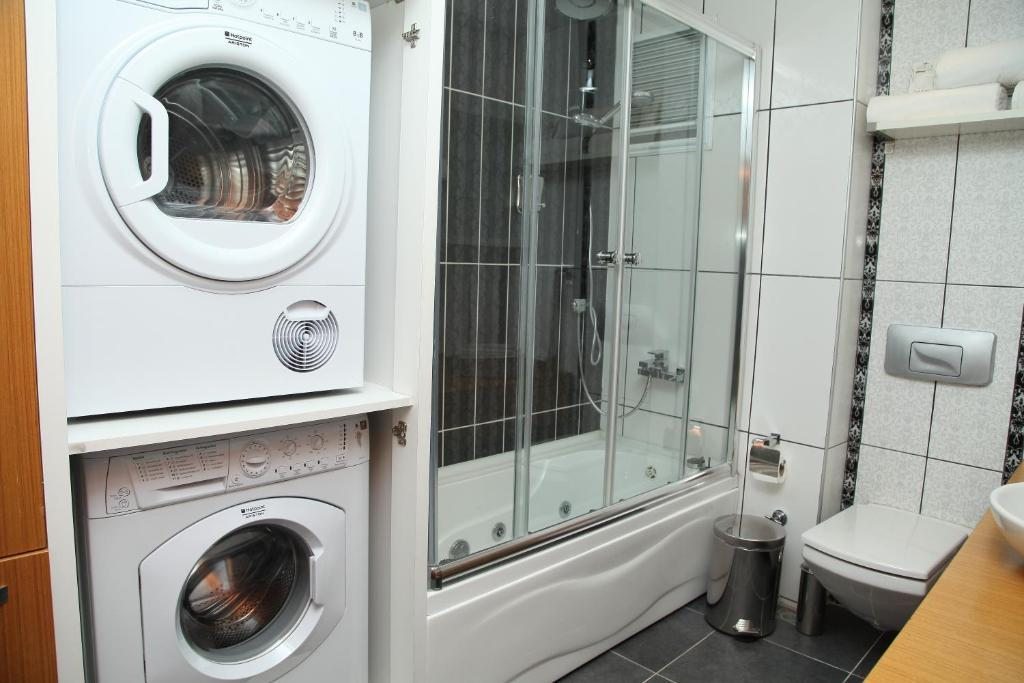 Гости могут пользоваться стиральной машиной, утюгом и ванной комнатой с феном, тапочками и бесплатными туалетно-косметическими принадлежностями.