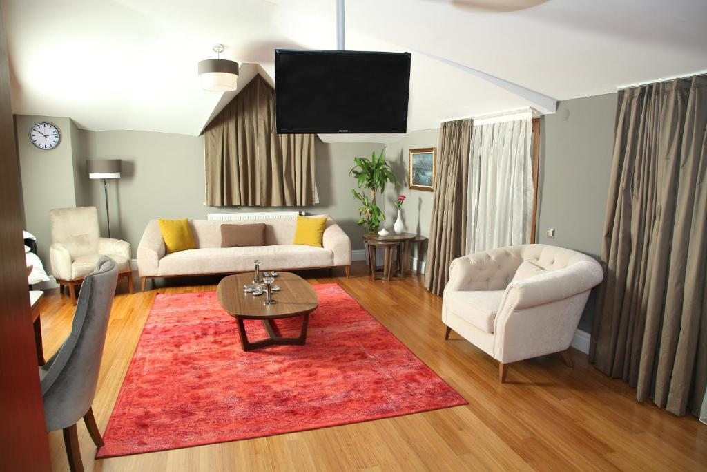 К услугам гостей комплекса Eyup Sultan Suites просторные люксы, обставленные красивой современной мебелью, с паркетным полом и большой гостиной с диваном, обеденной зоной и телевизором со светодиодной подсветкой.