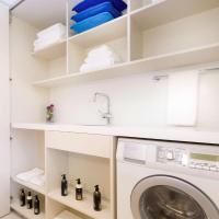 В числе других удобств — стильная ванная комната, стиральная машина и место для хранения вещей.