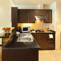 В апартаментах очень стильный интерьер и хорошее оснащение, спутниковое ТВ, кондиционер, просторная кухня, на которой было все от плиты до столовых приборов. В ванной комнате удобно и чисто. Расположение отеля в центральной части города позволяло быстро добраться до любого нужного места.