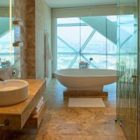Отель Andaz Capital Gate Abu Dhabi с 2 ресторанами и роскошными номерами и люксами с французскими окнами и видом на город расположен в знаменитом небоскребе Capital Gate всего в нескольких минутах ходьбы от выставочного центра.