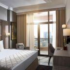 Отель хороший, рядом есть метро, что очень удобно. Номер у нас был люкс премиум с большой кроватью и потрясающим видом на море. Можно сказать, что в номере было абсолютно все что необходимо. В ванной были халаты, тапочки, средства гигиены и полотенца. Питание в отеле нам очень понравилось, много блюд из рыбы, на столе много фруктов и овощей. На территории есть бассейн, фитнес-центр, сауна и бильярд.