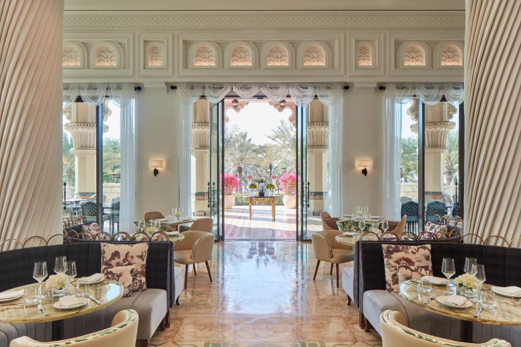 Для гостей предоставлены все удобства прямо на территории отеля. Более 50 первоклассных баров, кафе и ресторанов. Очень знаменит и пользуется рыбный ресторан расположен прямо над водами Персидского залива. Второй не менее знаменитый — ресторан под названием "Magnolia" славится напитками и блюдами, приготовленными из продуктов, которые считаются экологически чистыми. Также пользуется спросом бар под названием "Koubba", где комфортно проводить время, к примеру, по вечерам можно смотреть за закатами солнца. Для гостей на обед сервируют большой «шведский стол» в утонченном арабском стиле с широким ассортиментом блюд и напитков. Также здесь на территории есть эксклюзивный рыбный ресторан над водами Персидского залива.