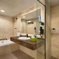 В просторных номерах отеля La Quinta by Wyndham Bur Dubai имеются гостиная зона и отделанная мрамором ванная комната с роскошными туалетно-косметическими принадлежностями.