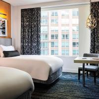 Отель занимает 33-этажное стеклянное здание в форме призмы с потрясающим видом на озеро Мичиган и городской пейзаж.