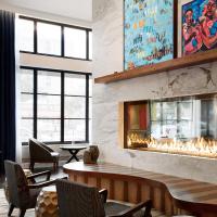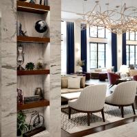 Лобби отеля располагает двусторонним камином и гостиной зоной.