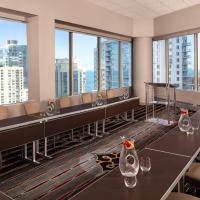 Отель в форме стеклянного треугольника с роскошными ресторанами на территории находится в центре Чикаго, недалеко от озера Мичиган, а также фешенебельных магазинов, ресторанов и центров развлечений на улице Великолепная миля.