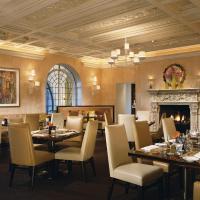 В современном ресторане Mansion с камином подают блюда современной американской кухни на завтрак, обед и ужин.