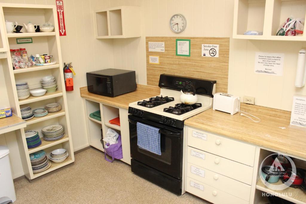 Все номера в хостеле HI - Honolulu University для мужчин или женщин располагают общей полностью оборудованной кухней, телевизором и гостиной.