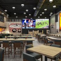 Паб PT's Wings & Sports предлагает широкий выбор пива и разнообразных блюд.