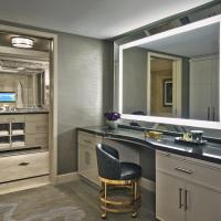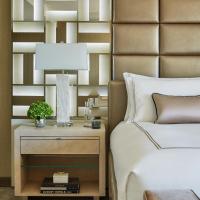 В числе удобств — роскошные вместительные встроенные шкафы для одежды, зеркала-трельяжи в полный рост с регулируемым освещением и большие туалетные столики, вдохновленные ретро-гламуром Голливуда.