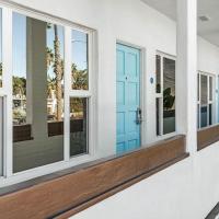 В распоряжении гостей номера, оформленные в классическом калифорнийском и рок-н-рольном стиле, в которых установлены кровати с изголовьем из досок для серфинга.