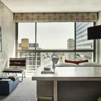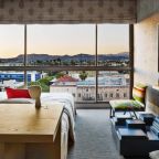 Современные номера с французскими окнами и видом на Лос-Анджелес обставлены мебелью, выполненной по индивидуальному заказу, и украшены произведениями современного искусства.