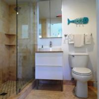 Собственная ванная комната укомплектована феном и бесплатными туалетно-косметическими принадлежностями.