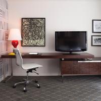 В числе удобств сейф и эргономичный письменный стол.