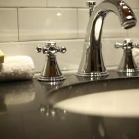Собственная ванная комната укомплектована феном и туалетно-косметическими принадлежностями.