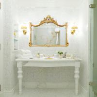 В числе удобств современная ванная комната с отдельным тропическим душем и фурнитурой, покрытой 24-каратным золотом.
