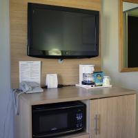 Номера мотеля Aladdin Inn and Suites оформлены в строгом стиле и располагают рабочим столом и телевизором с кабельными каналами и киноканалами HBO.