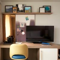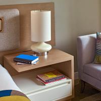 A work desk, small fridge, and coffee-making facilities are included in each modern guest room at The Hotel Zags Portland.