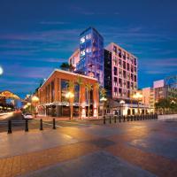 Featuring a beautiful rooftop pool deck and an active nightlife, this modern, music-centered hotel stands within San Diego’s Gaslamp district.