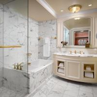 В числе удобств номеров отеля Grand America мраморная ванная комната с халатами и тапочками и балкон.