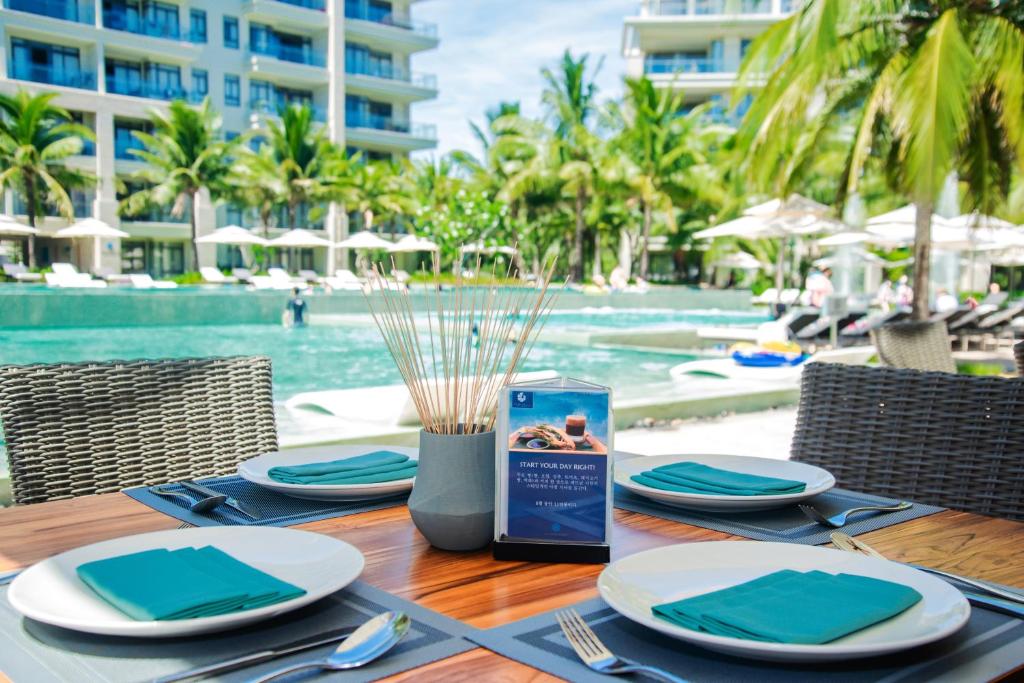 В ресторане White Caps на территории подают разнообразные блюда европейской и вьетнамской кухни.