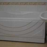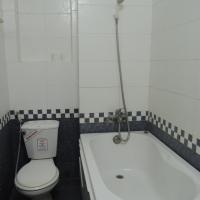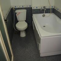 В прилегающей ванной комнате установлены ванна и душ с горячей водой.