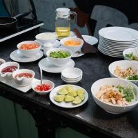 - Все тарелки, стаканы, столовые приборы и другая кухонная посуда продезинфицированы