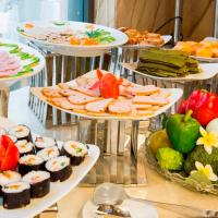 В номере была небольшая кухня. Можно самим приготовить. В ресторане очень много разнообразных блюд. В целом отель очень понравился, особенно бассейн на террасе.