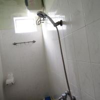 Примыкающая ванная комната укомплектована тапочками и душем.
